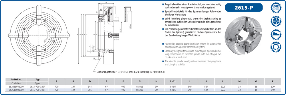 • Uzun iş parçalarında yüksek kavrama gücünü garanti eder